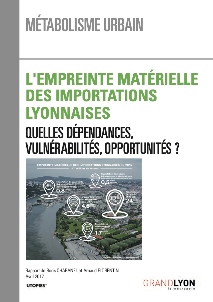 La présente étude vise à apporter de nouveaux éclairages sur le métabolisme du territoire lyonnais en se focalisant sur le soubassement matériel du fonctionnement de l’économie locale. Pour ce faire, elle mobilise une approche novatrice à l’échelle des territoires : l’ « analyse entrées-sorties environnementale ». Celle-ci consiste à retracer les échanges internes et externes de l’économie lyonnaise afin d’analyser la dépendance matérielle et économique induite par les flux d’importations.